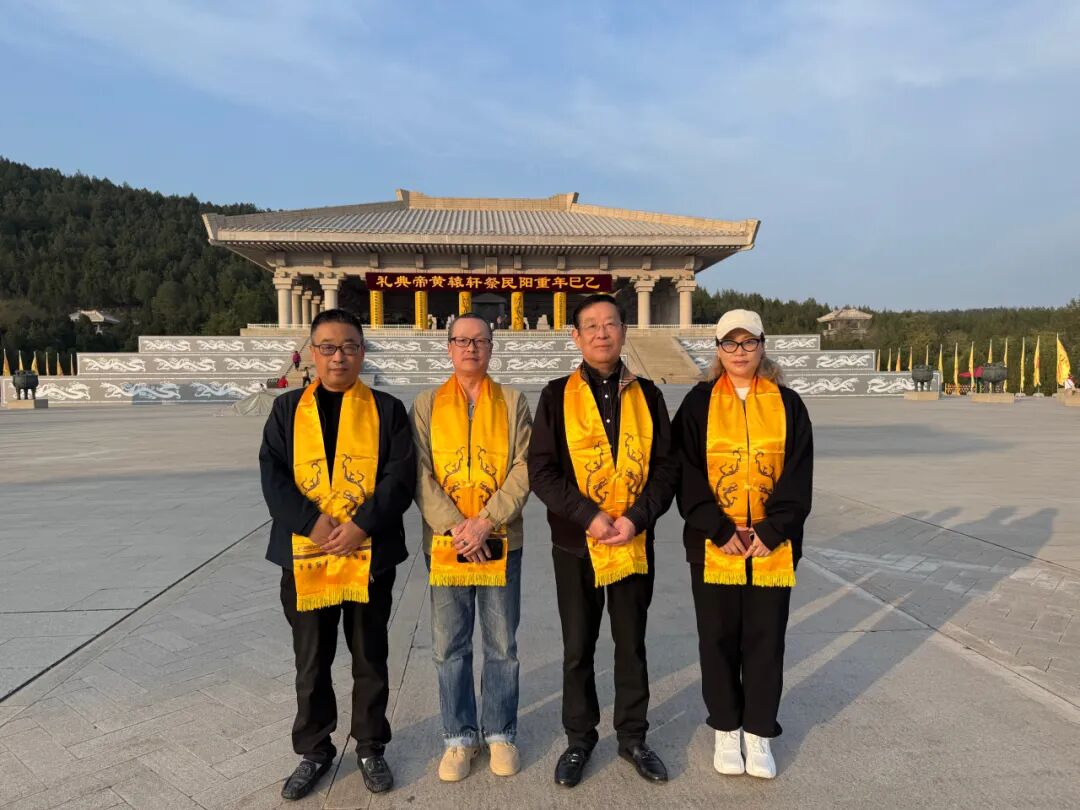 晨光如诗,在桥山的每一片柏叶上写下金色的诗行。露珠晶莹,缀在石阶如散落的珍珠。项雄军踏露而行,步履间仿佛踏着千年时光的韵律。东道主黄陵县政法委原副书记牛文华,好友刘戈兵、梁剑与我静随其后,大家的脚步声轻叩着历史的大门。这一刻,他不是商海弄潮的游子,而是循着文明曙光归来的文化赤子。