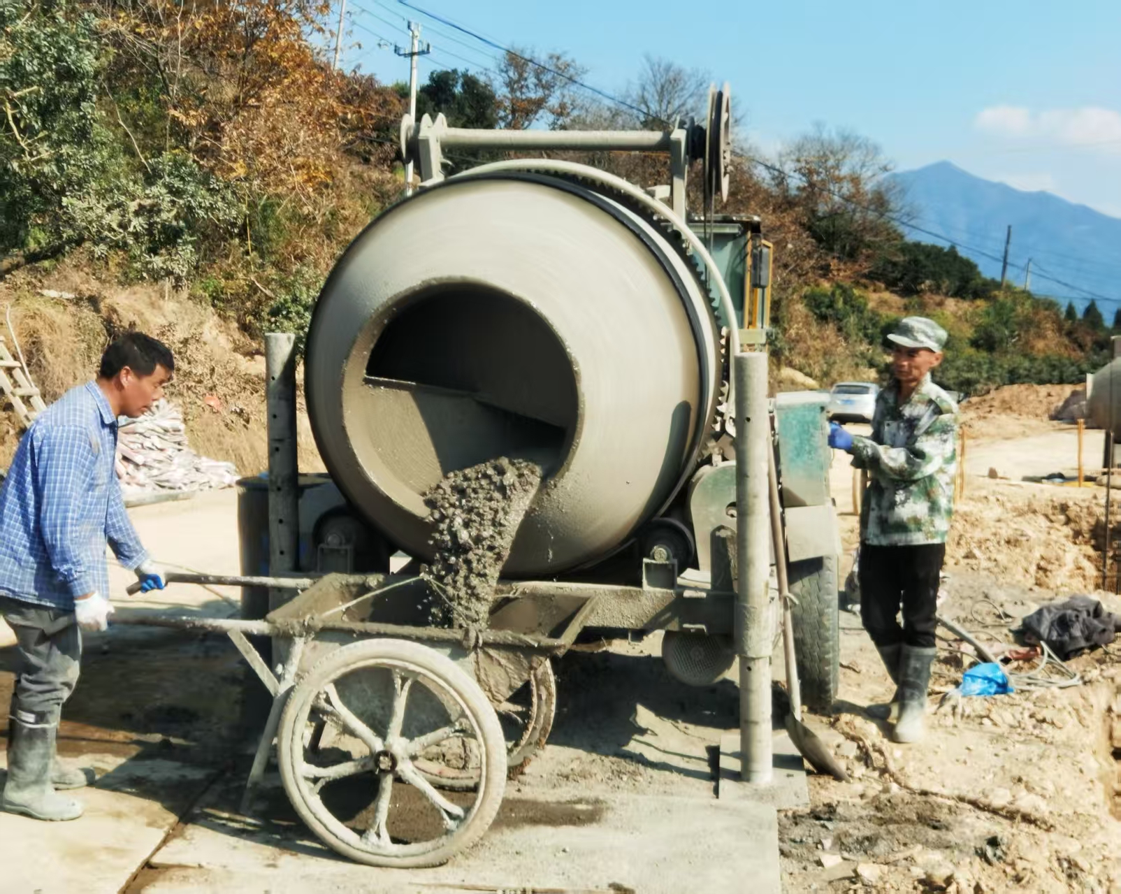 连日来,在位于永嘉县岩坦镇霄岭村为农服务中心建设场地,挖掘机、混凝土搅拌机来回工作,工人有的搬运货物、有的浇筑地梁、有的砌石墙,现场一派忙碌的景象。